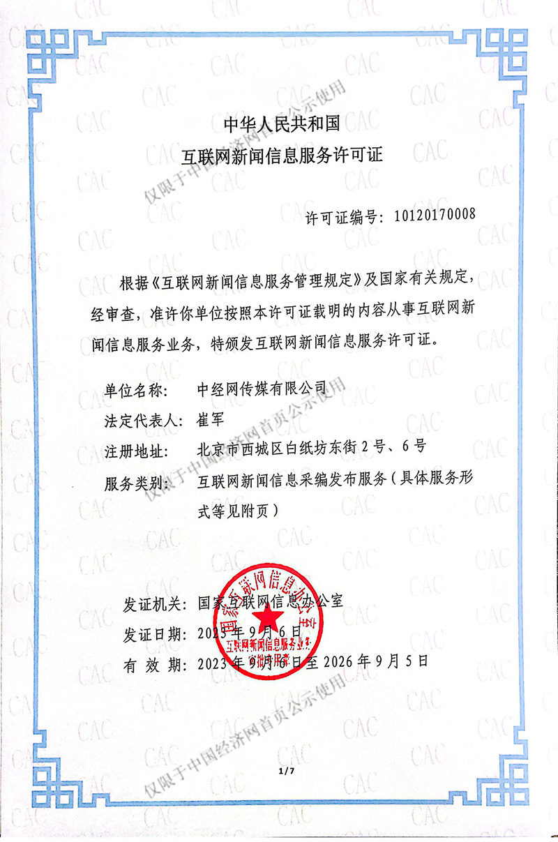 中國經濟網《互聯(lián)網新聞信息服務許可證》公示