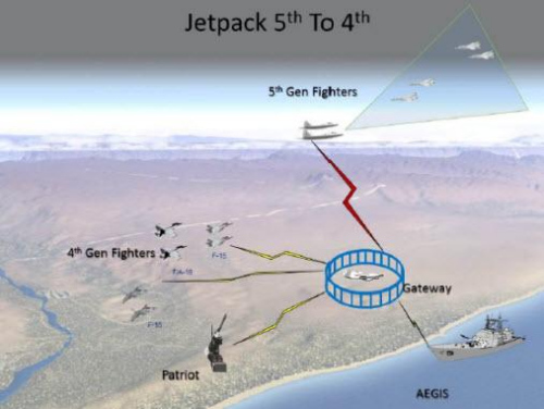 一旦試飛取得成功,美國空軍就將正式接管該項目,在此基礎(chǔ)上建立一個“在冊項目”并為其提供資金。美國空軍的一些官員們將該項目稱為“從五代機到四代機”(5th to 4th),意思是從五代機向四代機傳送數(shù)據(jù)。該項目的作戰(zhàn)概念要求將網(wǎng)關(guān)安裝在一架單獨的平臺上,并且該平臺可保持處在視線內(nèi)。這意味著網(wǎng)關(guān)平臺需要飛得足夠高——例如像“全球鷹”無人機的飛行高度——以便在敵方防區(qū)外與己方部隊保持通信;或者,該網(wǎng)關(guān)平臺應(yīng)具有隱身能力。ACC在其演示文件中顯示的網(wǎng)關(guān)平臺是“全球鷹”,但漢米爾頓表示空軍并未就網(wǎng)關(guān)平臺的選擇做出最后決定。該項目的另一個主要目標(biāo)是將所有需要的部件都裝在網(wǎng)關(guān)平臺上,而不需要為戰(zhàn)斗機加裝任何設(shè)備,因為,為F-22或F-35加裝任何天線而又不損害它們的隱身性能,是一件麻煩且費錢的事情。