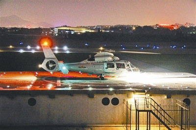 中國某艦載機(jī)部隊直升機(jī)模擬夜間海上著艦