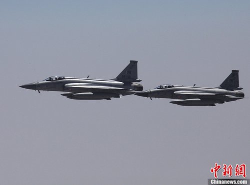 資料圖:李克強訪問巴基斯坦期間,梟龍戰(zhàn)機為中方專機護航。