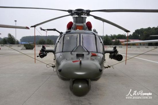 中國空軍裝備的直-9WA型武裝直升機(jī) 攝影:人民網(wǎng)記者 楊鐵虎