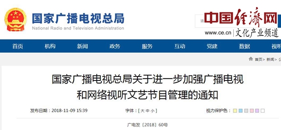 經(jīng)濟(jì)日?qǐng)?bào)-中國(guó)經(jīng)濟(jì)網(wǎng)北京11月20日訊 日前,國(guó)家廣播電視總局發(fā)布了《關(guān)于進(jìn)一步加強(qiáng)廣播電視和網(wǎng)絡(luò)視聽文藝節(jié)目管理的通知》(以下簡(jiǎn)稱“通知”)?!锻ㄖ分赋?,一些文藝節(jié)目出現(xiàn)了影視明星過多、追星炒星、泛娛樂化、高價(jià)片酬、收視率(點(diǎn)擊率)造假等問題,不僅推高制作成本、破壞行業(yè)秩序生態(tài),而且誤導(dǎo)青少年盲目追星,滋長(zhǎng)拜金主義、一夜成名等錯(cuò)誤價(jià)值觀念,必須采取有效措施切實(shí)加以糾正。