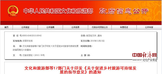 經(jīng)濟(jì)日報(bào)-中國經(jīng)濟(jì)網(wǎng)北京12月11日訊 為深入貫徹落實(shí)《中共中央 國務(wù)院關(guān)于實(shí)施鄉(xiāng)村振興戰(zhàn)略的意見》(中發(fā)〔2018〕1號)和《鄉(xiāng)村振興戰(zhàn)略規(guī)劃(2018-2022年)》,推動(dòng)鄉(xiāng)村旅游提質(zhì)增效,促進(jìn)鄉(xiāng)村旅游可持續(xù)發(fā)展,加快形成農(nóng)業(yè)農(nóng)村發(fā)展新動(dòng)能,近日文化和旅游部等17部門聯(lián)合印發(fā)《關(guān)于促進(jìn)鄉(xiāng)村旅游可持續(xù)發(fā)展的指導(dǎo)意見》(以下簡稱《意見》),《意見》提出,到2022年,旅游基礎(chǔ)設(shè)施和公共服務(wù)設(shè)施進(jìn)一步完善,鄉(xiāng)村旅游服務(wù)質(zhì)量和水平全面提升,富農(nóng)惠農(nóng)作用更加凸顯,基本形成布局合理、類型多樣、功能完善、特色突出的鄉(xiāng)村旅游發(fā)展格局。