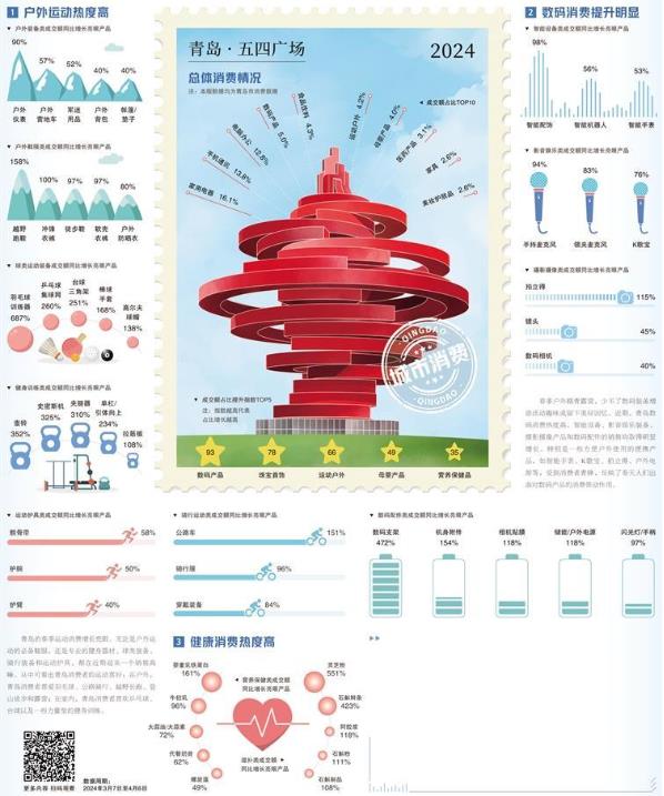 近年來,青島打造了多個旅游IP,每到節(jié)假日,棧橋、太平角、八大關、五四廣場等景點,都會人頭攢動。影音娛樂、攝影攝像類產(chǎn)品的增長,顯現(xiàn)出青島著名旅游城市的底色。人氣足,消費旺,文旅深度融合進一步激發(fā)了消費活力。