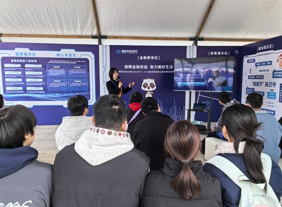 現(xiàn)場,綿陽市商業(yè)銀行金融基地志愿者立足專業(yè)優(yōu)勢,化身金融安全衛(wèi)士,針對“代理退?!薄按砭S權(quán)”“減免債務(wù)”等不法中介亂象,通過案例剖析、情景模擬等方式開展風(fēng)險提示,為市民群眾解答疑問、發(fā)放宣傳手冊,宣傳存款保險、養(yǎng)老詐騙、非法集資等金融知識。同時,構(gòu)建“雙向發(fā)力”宣傳矩陣:一方面,深入解讀金融促消費政策紅利,推介該行支持小微企業(yè)融資協(xié)調(diào)工作機制和普惠小微特色金融產(chǎn)品,展示服務(wù)社會、服務(wù)發(fā)展等惠民舉措。另一方面,運用開放日平臺打造“以案說險”“消保微課堂”等特色節(jié)目,有效提升公眾金融素養(yǎng)和風(fēng)險識別能力。