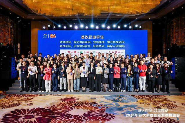 圖為“2024年餐飲消費(fèi)創(chuàng)新發(fā)展推進(jìn)會”餐飲企業(yè)共同發(fā)出承諾
