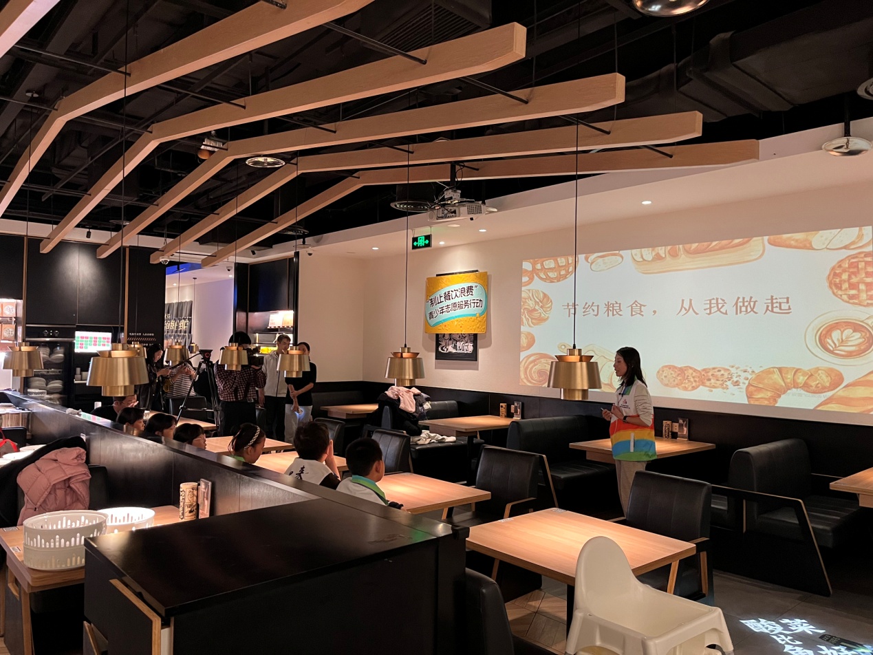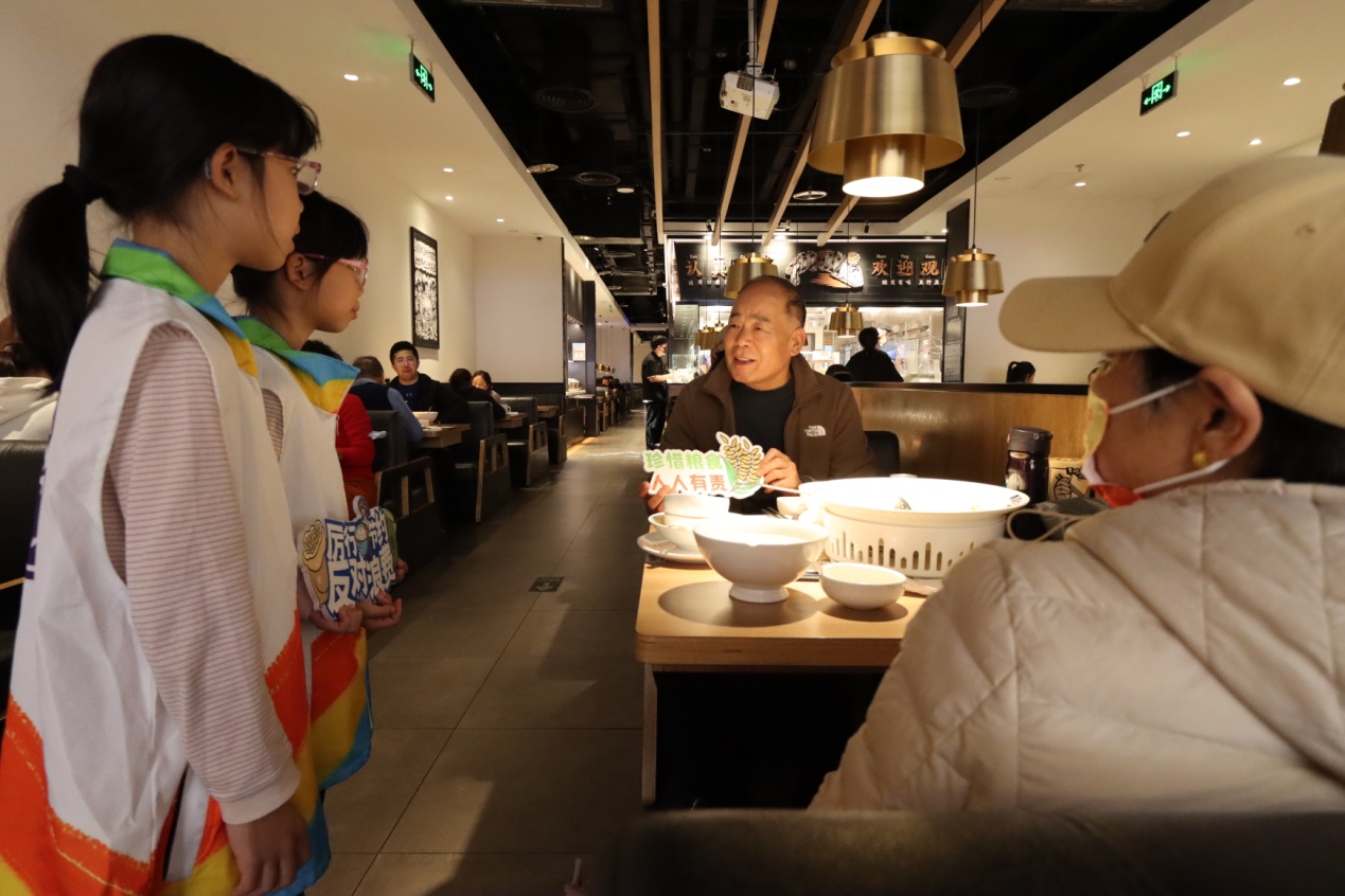 活動將科普與實踐相結(jié)合,青少年志愿者們學(xué)以致用,在實踐環(huán)節(jié)化身“制止餐飲浪費”宣傳員,向餐廳中的消費者宣傳節(jié)糧反浪費知識。