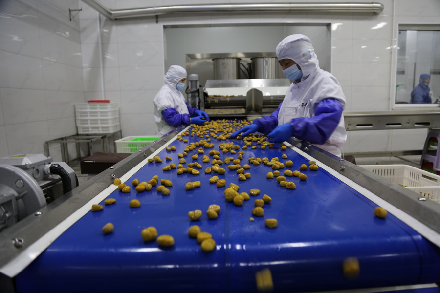 品牌賦能下,龍頭企業(yè)扛起了板栗深加工的大梁。在秦皇島百峰食品有限公司的生產(chǎn)車間內(nèi),自動化生產(chǎn)線上顆顆板栗經(jīng)篩選、去殼、殺菌等程序后,變身板栗仁、冰栗等深加工產(chǎn)品?!肮静捎盟賰鲦i鮮技術破解板栗‘半年鮮’的短板,全面提升產(chǎn)品附加值。”公司顧問杜青剛介紹,這些產(chǎn)品不僅暢銷國內(nèi)市場、入駐盒馬鮮生等大型商超,還遠銷日韓、歐美等國家和地區(qū)。截至目前,企業(yè)的板栗及深加工產(chǎn)品訂單額達1.23億元,較去年同期增長10%,展現(xiàn)出良好的市場增長活力。