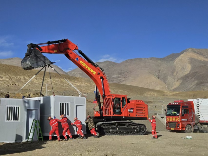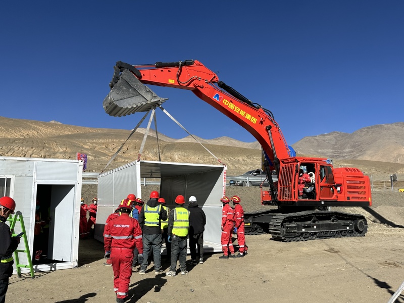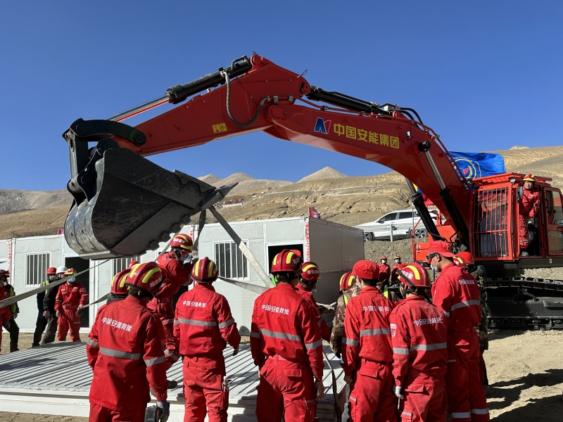 1月9日,在前方指揮部的統(tǒng)一調(diào)度下,繼完成受損房屋搜尋、用電需求保障、安置帳篷搭設(shè)、協(xié)助轉(zhuǎn)運重傷員等任務后,為了保障受災群眾溫暖過冬,中國安能在嘎旦村、玉白村方向組織開展場地平整作業(yè),并進行活動板房的搭設(shè)。在嘎旦村投入60余人、10余臺重型救援裝備全力投入板房搭設(shè)工作。過程中,挖掘機、吊機等重型裝備與救援人員共同協(xié)作,搭建工作進展迅速。