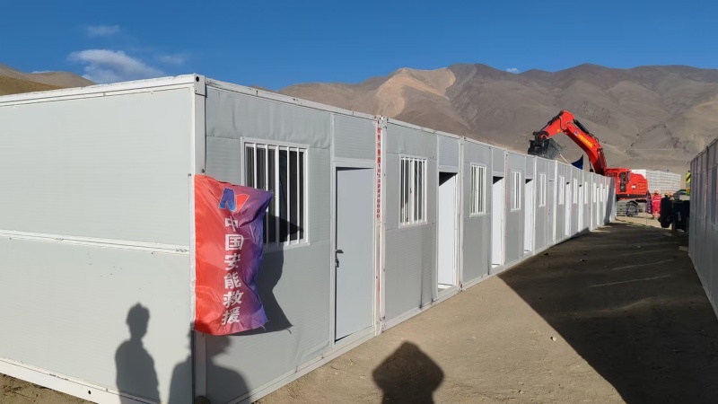 一排排活動板房已初步搭設(shè)完畢。與臨時搭建的帳篷相比,這些板房保暖效果更好。目前,板房內(nèi)設(shè)備正在逐漸完善,將盡快安排受災群眾入住。 中國安能供圖
