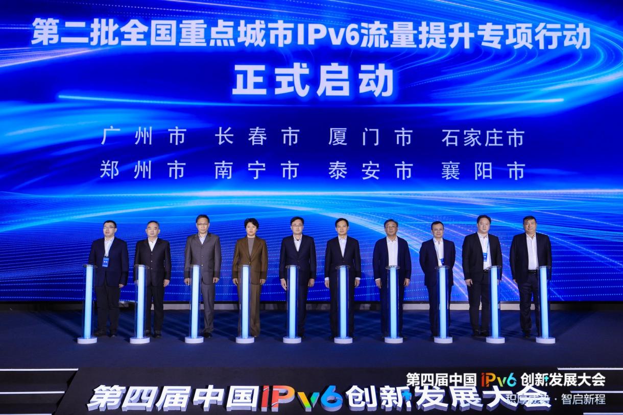 成果發(fā)布環(huán)節(jié),與會各方共同見證了中央網信辦、工業(yè)和信息化部組織開展“全國重點城市IPv6流量提升專項行動”的經驗和成果,8個重點城市固定網絡IPv6流量占比同比增長63.14%,移動網絡IPv6流量平均占比同比增長12.37%。中央網信辦信息化發(fā)展局、工業(yè)和信息化部信息通信發(fā)展司及第二批8個重點城市相關領導,共同啟動“第二批全國重點城市IPv6流量提升專項行動”,深化關鍵環(huán)節(jié)升級改造,帶動全國IPv6發(fā)展水平再上新臺階。會上還發(fā)布了工業(yè)和信息化部、中央網信辦組織開展“網絡去NAT”專項工作的階段性成果:9個試點地區(qū)基礎電信企業(yè)自有環(huán)境固定寬帶用戶IPv6連通率達97.52%,試點地區(qū)NAT44設備容量全面實現(xiàn)零增長。后續(xù),相關部門將在試點經驗基礎上,在全國范圍內進一步開展“網絡去NAT”專項工作,持續(xù)推動網絡和應用的IPv6演進升級。