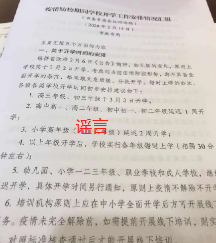 經(jīng)濟(jì)日報(bào)-中國經(jīng)濟(jì)網(wǎng)2月19日訊 (記者朱國旺郭文培) 近日,一張名為“疫情防控期間學(xué)校開學(xué)工作安排情況匯報(bào)”的截圖在網(wǎng)上瘋傳。截圖顯示,這是一份學(xué)校開學(xué)安排情況的討論稿,對開學(xué)時(shí)間作了初步安排,并有如下表述:“根據(jù)省政府2月6日《公告》精神,如無新的變化,原則上學(xué)校將于3月2日開學(xué)。”