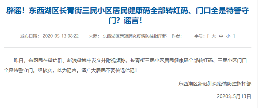 謠言粉碎機一:武漢三民小區(qū)居民健康碼全轉(zhuǎn)紅,鐘南山到三民小區(qū)?謠言!