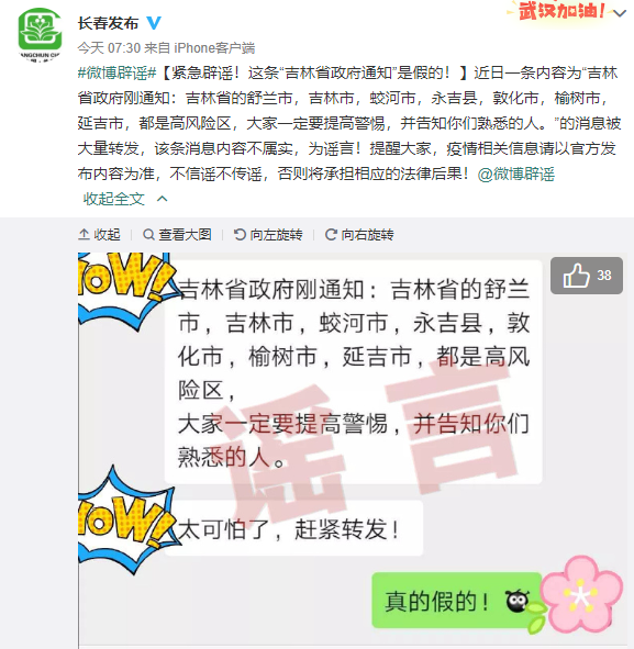 謠言粉碎機三:“吉林省政府通知”:吉林多市屬高風(fēng)險區(qū)?假的!