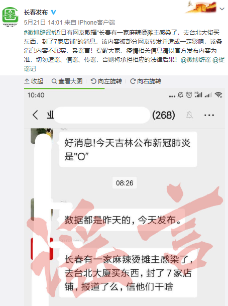 謠言粉碎機(jī)三:長春一麻辣燙攤主感染新冠病毒,7家店鋪被封?謠言!