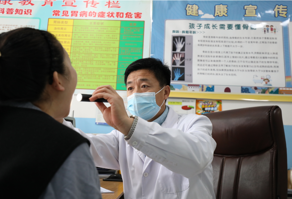 王長(zhǎng)生醫(yī)生正在給患者做檢查