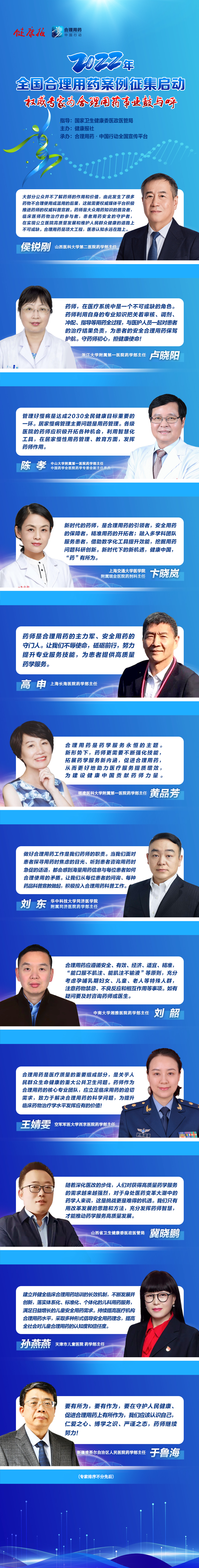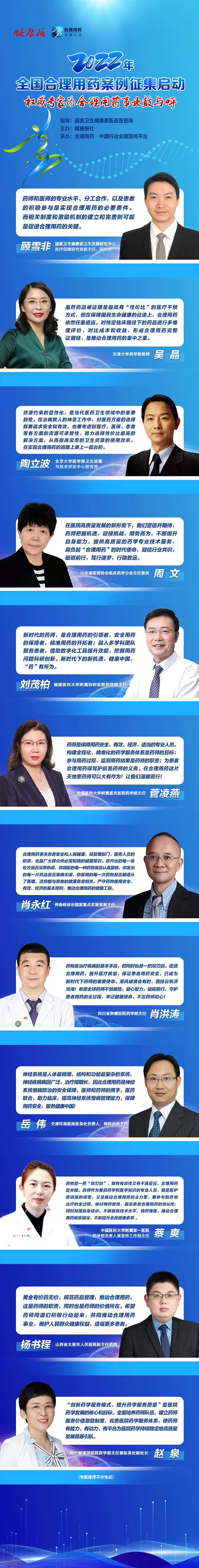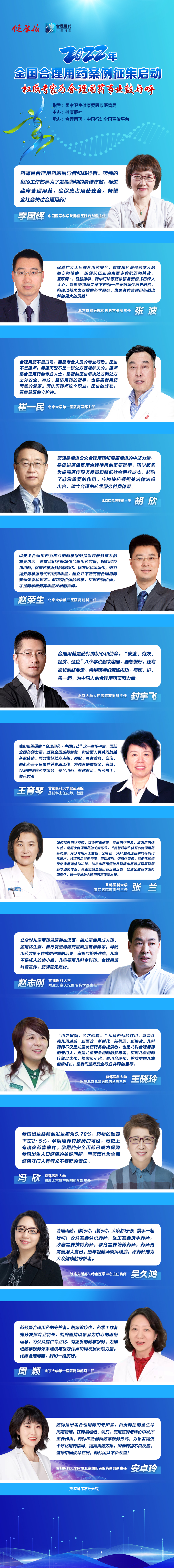 全國(guó)權(quán)威醫(yī)藥專家寄語合理用藥事業(yè),齊聚征集啟動(dòng)時(shí)刻,歡迎各地衛(wèi)生健康行政主管部門和醫(yī)療機(jī)構(gòu)積極報(bào)送案例。