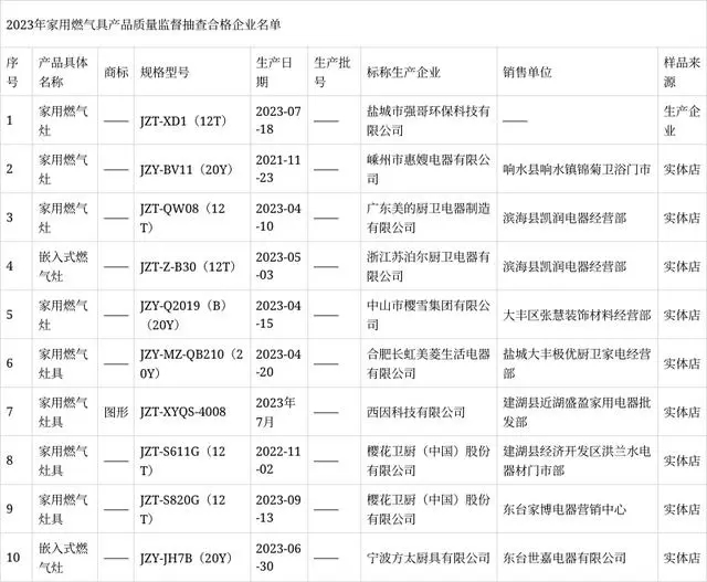 2023年度鹽城市市場監(jiān)督管理局委托南京市產(chǎn)品質(zhì)量監(jiān)督檢驗(yàn)院(南京市質(zhì)量發(fā)展與先進(jìn)技術(shù)應(yīng)用研究院)組織實(shí)施家用燃?xì)饩弋a(chǎn)品市級監(jiān)督抽查。本次抽查計(jì)劃10批次,抽到10批次,經(jīng)檢驗(yàn)合格10批次。