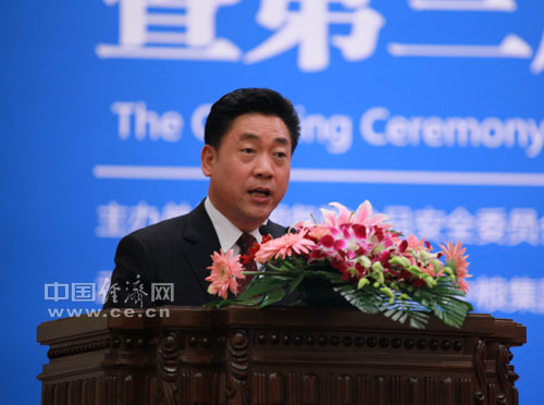 第三屆食品安全論壇開幕式主持人、國務(wù)院食品安全委員會辦公室副主任劉佩智 王維亮攝