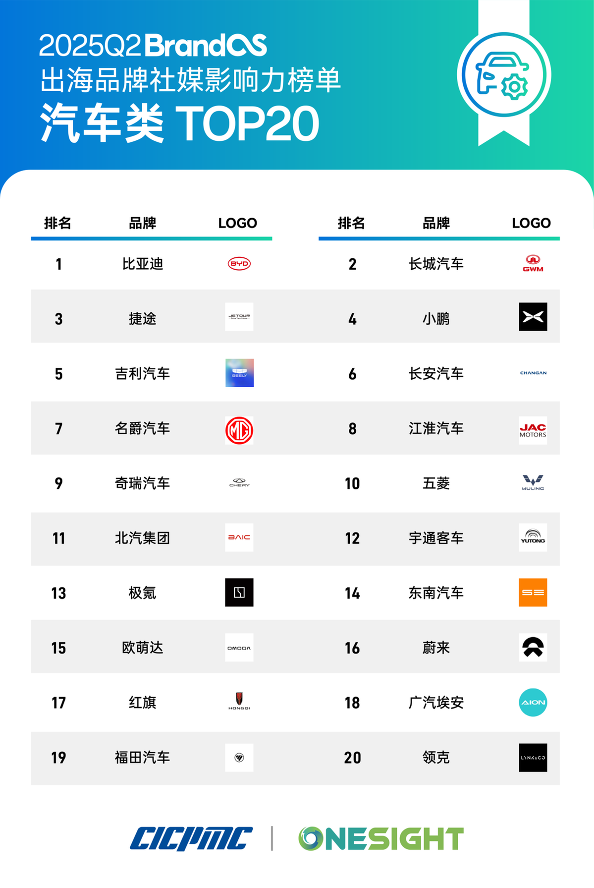 近日,中國國際跨國公司促進(jìn)會(簡稱“跨國會”)發(fā)布消息稱,2025年第二季度《BrandOS出海品牌社媒影響力榜單》(以下簡稱“BrandOS榜單”)正式發(fā)布。該榜單由跨國會與OneSight聯(lián)合推出,旨在通過數(shù)據(jù)化手段評估中國品牌在海外社交媒體平臺上的傳播表現(xiàn),為企業(yè)全球化發(fā)展提供參考依據(jù)。