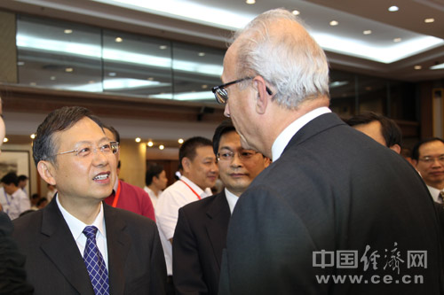 由中國道路交通安全協(xié)會、中國汽車技術研究中心和中國經濟網共同主辦的“2013中國道路交通安全論壇”于8月29日在北京首都大酒店舉行。圖為公安部副部長黃明與國際道路交通安全協(xié)會主席高斯進行交流。中國經濟網 郝紅波 攝影