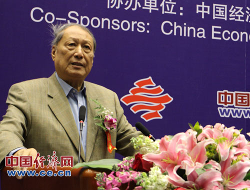 中國科學(xué)院預(yù)測科學(xué)研究中心1月26日(周五)在北京中科院數(shù)學(xué)與系統(tǒng)科學(xué)研究院舉辦“2013年中國經(jīng)濟(jì)預(yù)測發(fā)布與研討會”。圖為中國科學(xué)院預(yù)測科學(xué)研究中心學(xué)術(shù)委員會主任 第七、八屆全國人大副委員長成思危致辭。中國經(jīng)濟(jì)網(wǎng)楊瀟/攝影