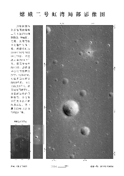 北京,2010年11月8日 國家國防科技工業(yè)局首次發(fā)布嫦娥二號月面虹灣局部影像圖 這是嫦娥二號虹灣局部影像圖(成像時(shí)間為10月28日)。