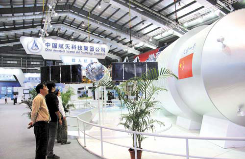 在第八屆中國國際航空航天博覽會中,中國航天科技集團公司推出代表月球探測工程最新成果的“嫦娥二號”衛(wèi)星模型,代表“北斗導航”工程、直徑達7米、蔚為壯觀的天地一體衛(wèi)星運行沙盤,1:1的“天宮一號”目標飛行器模型、新一代運載火箭以及代表深空探測計劃的“螢火一號”衛(wèi)星模型等國家重大工程項目近100項新展品首次亮相。